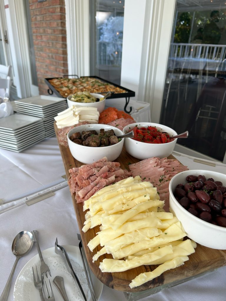 Guests enjoyed our antipasti display and more during cocktail hour on the patio before making their way into our banquet room for reception.